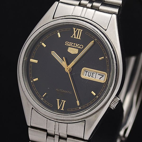 - セイコー AT/自動巻 セイコー5 黒文字盤 デイデイト ラウンド メンズ腕時計IKE