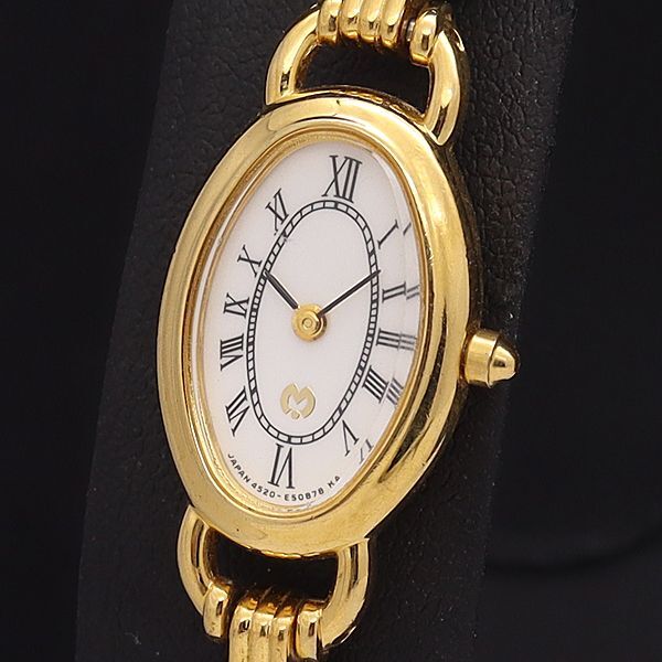 - 良品 ミラショーン QZ 4520-E50773 白文字盤 ローマン オーバル レディース腕時計 2550000NKG
