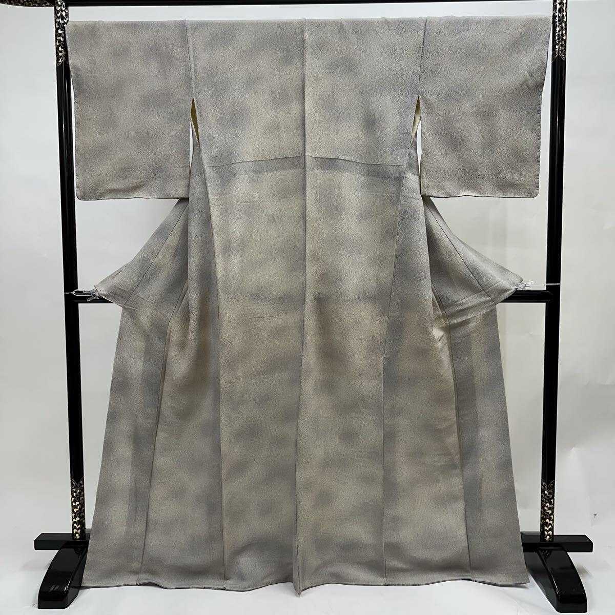 - 【七福】c844 正絹 色無地 暈し染め 鬼しぼちりめん 落款あり 桔梗縫紋 袷 着物 仕立て上がり 逸品 身丈 約165cm 裄 約67cm