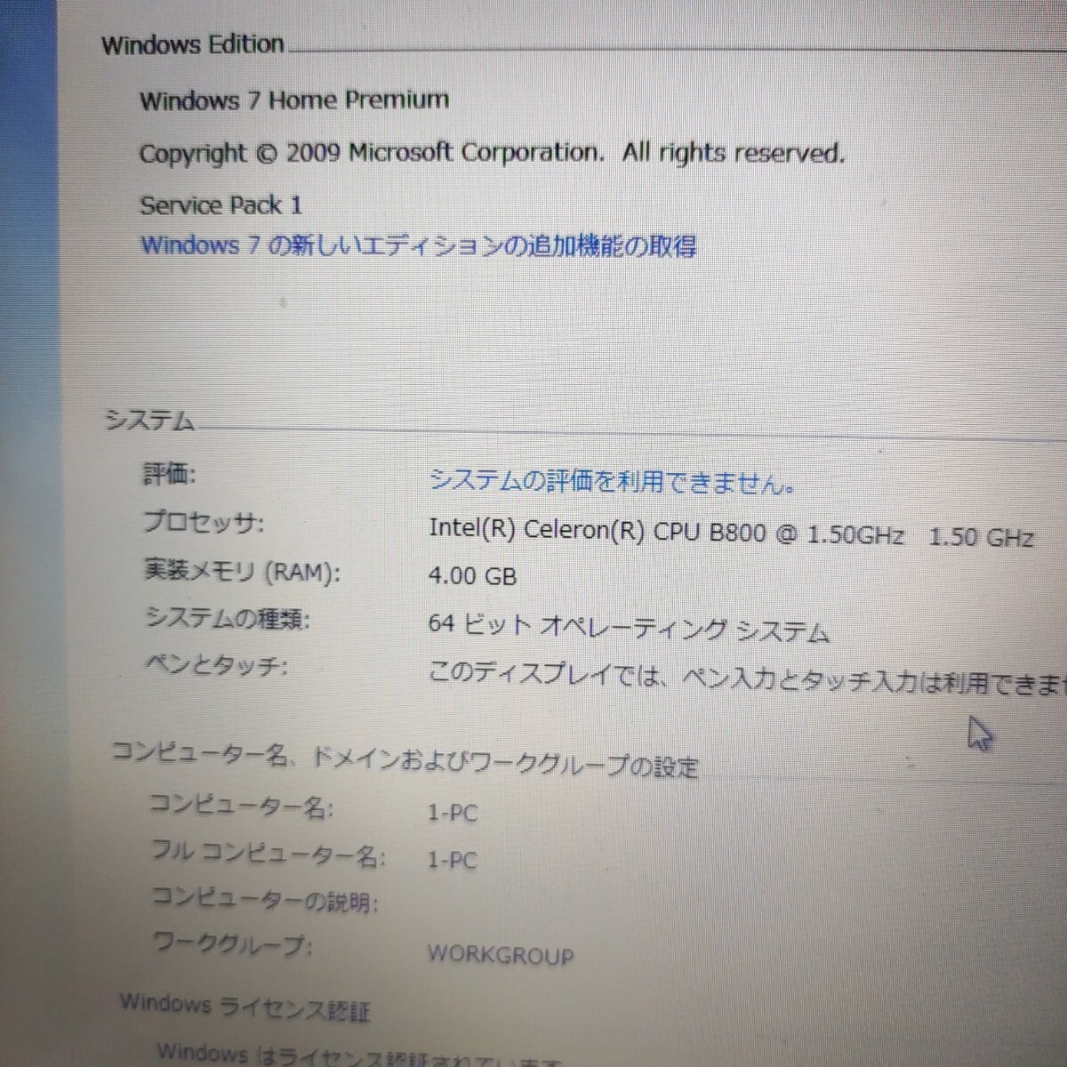 - NEC ノートパソコン PC-GL15CD5AS Cele B800 1.5GHz 4GB 320GB