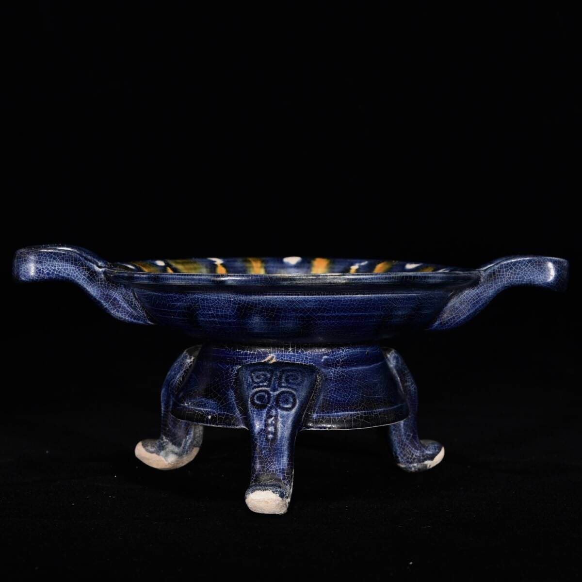 - 9_ZZ8976【惠】人間国宝 中国骨董 陶芸 磁器【三彩の両耳炉です】工芸品 施釉陶 青花磁 陶芸 置物 收藏品