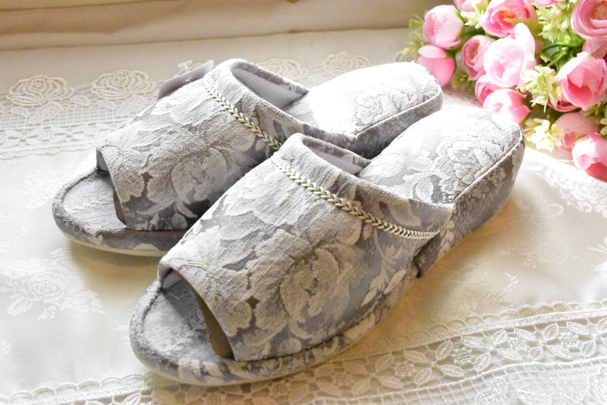 - H・ET2*条件付き送料無料も有!*ヒールスリッパ*アイスフラワー*ライトグレー*パンタロン*スリッパ*おしゃれ*可愛い*エレガント*上品
