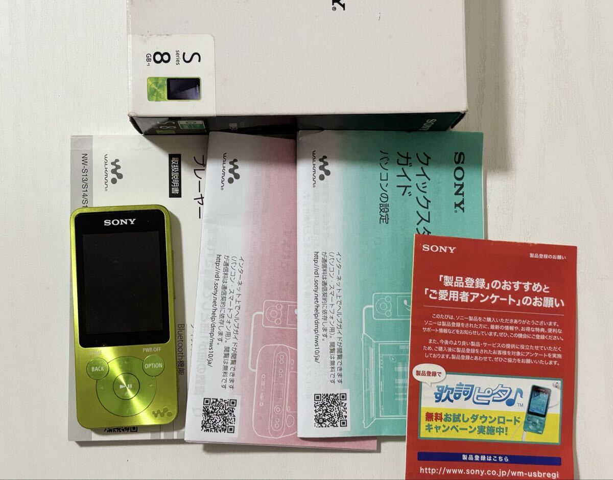 > SONY WALKMAN ウォークマン NW-S14 グリーン 8GB 説明書 外箱 ノイズキャンセリング機能 中古 ポータブル 難あり 0913
