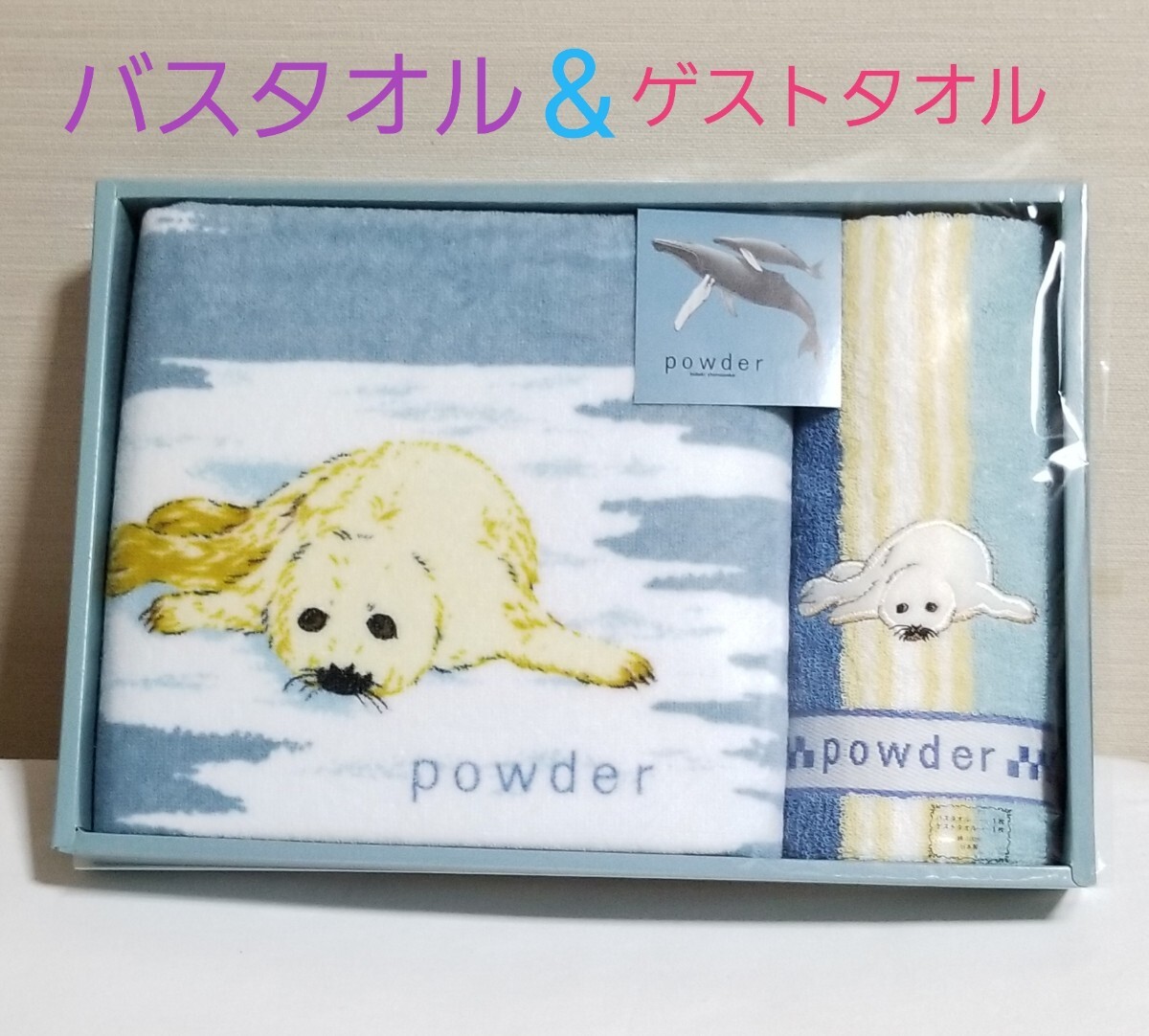 - T-448 [未使用品] powder タオルセット バスタオル / ゲストタオル 2枚セット 綿100% 箱付 贈答品 ギフト PWA-03034 BL