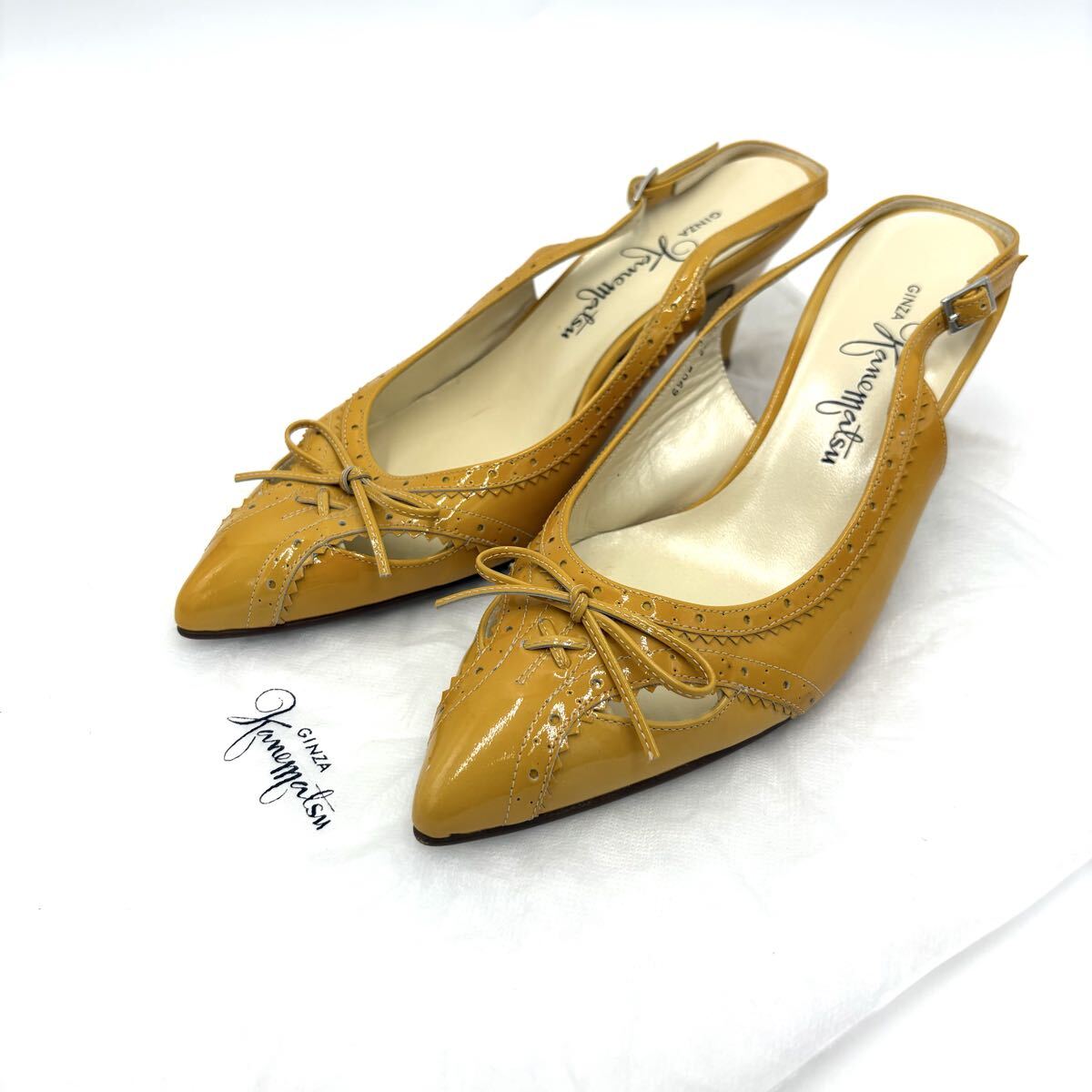 > O ■ 保存袋付き '高級感溢れる' GINZA KANEMATSU 銀座かねまつ LEATHER ポインテッドトゥ ヒール サンダル 23.5cmD 婦人靴 メダリオン