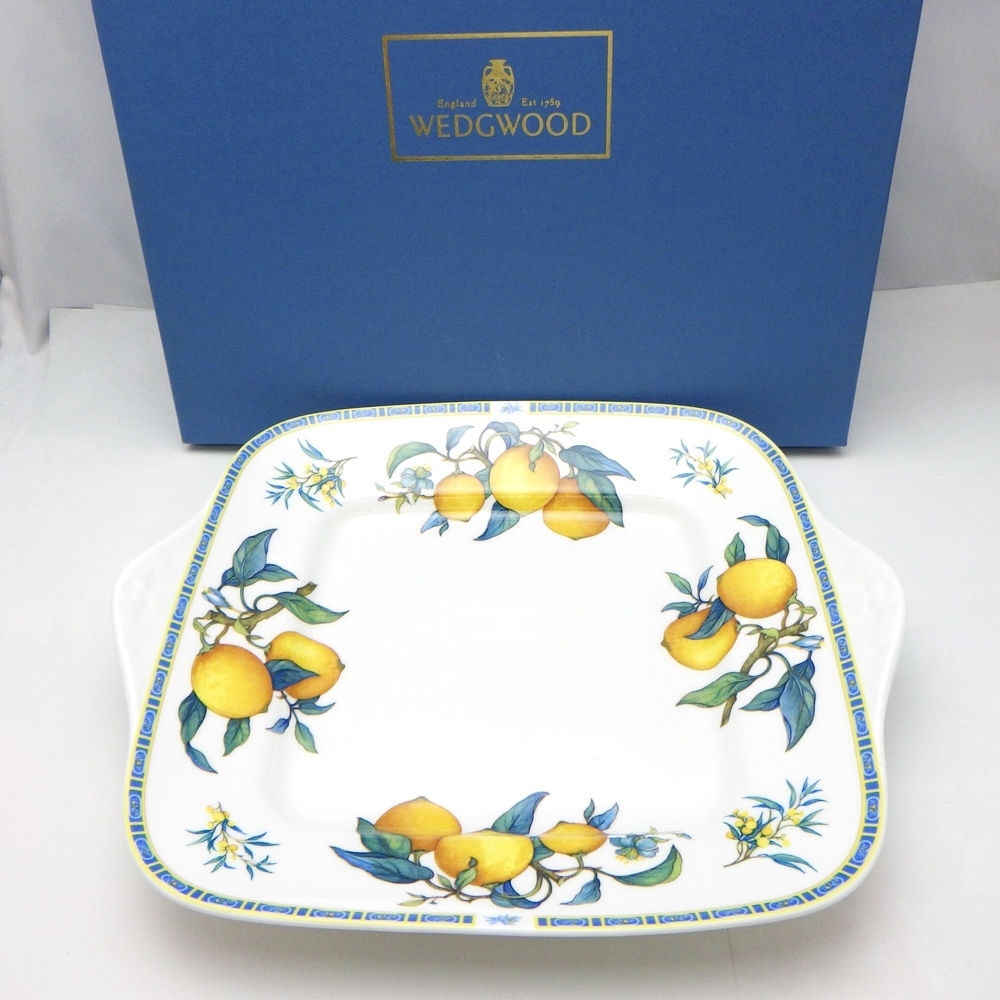 > A25-1837【未使用】WEDGWOOD ウェッジウッド シトロン スクエアプレート 角皿 皿 24cm 箱つき 保管品 廃番品(1994年-2000年)