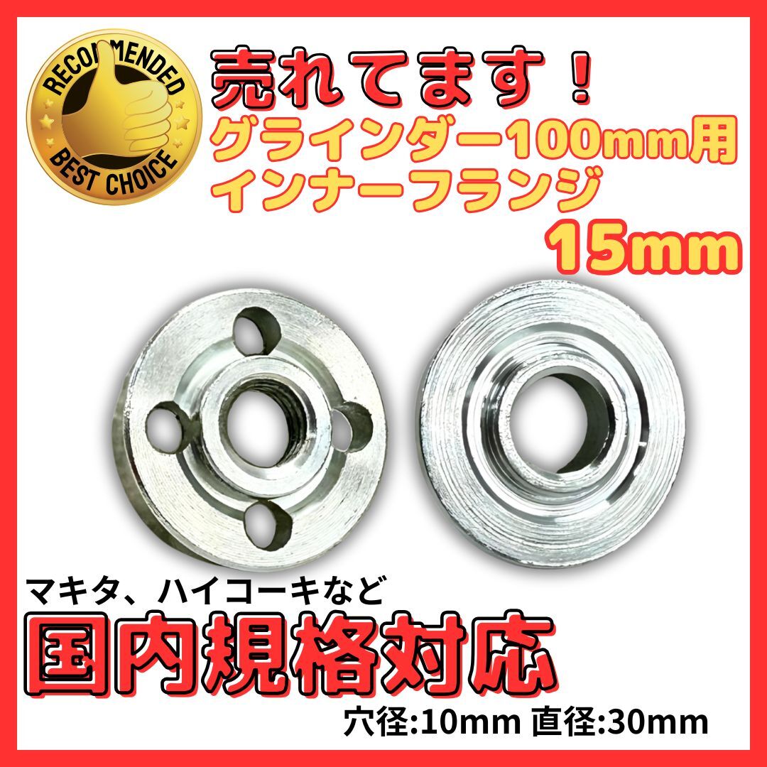 - A マキタ 互換 インナーフランジ 15mm ロックナット セット グラインダー 100mm用 穴径10mm ハイコーキ リョービ 対応 砥石用 (GRF1501)