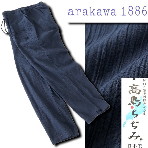 - 新品 arakawa1886 日本製 和装 高島ちぢみ ロング イージー パンツ L 紺 【P24666】 荒川 メンズ びわこ源流の郷 オーガニックブレンド