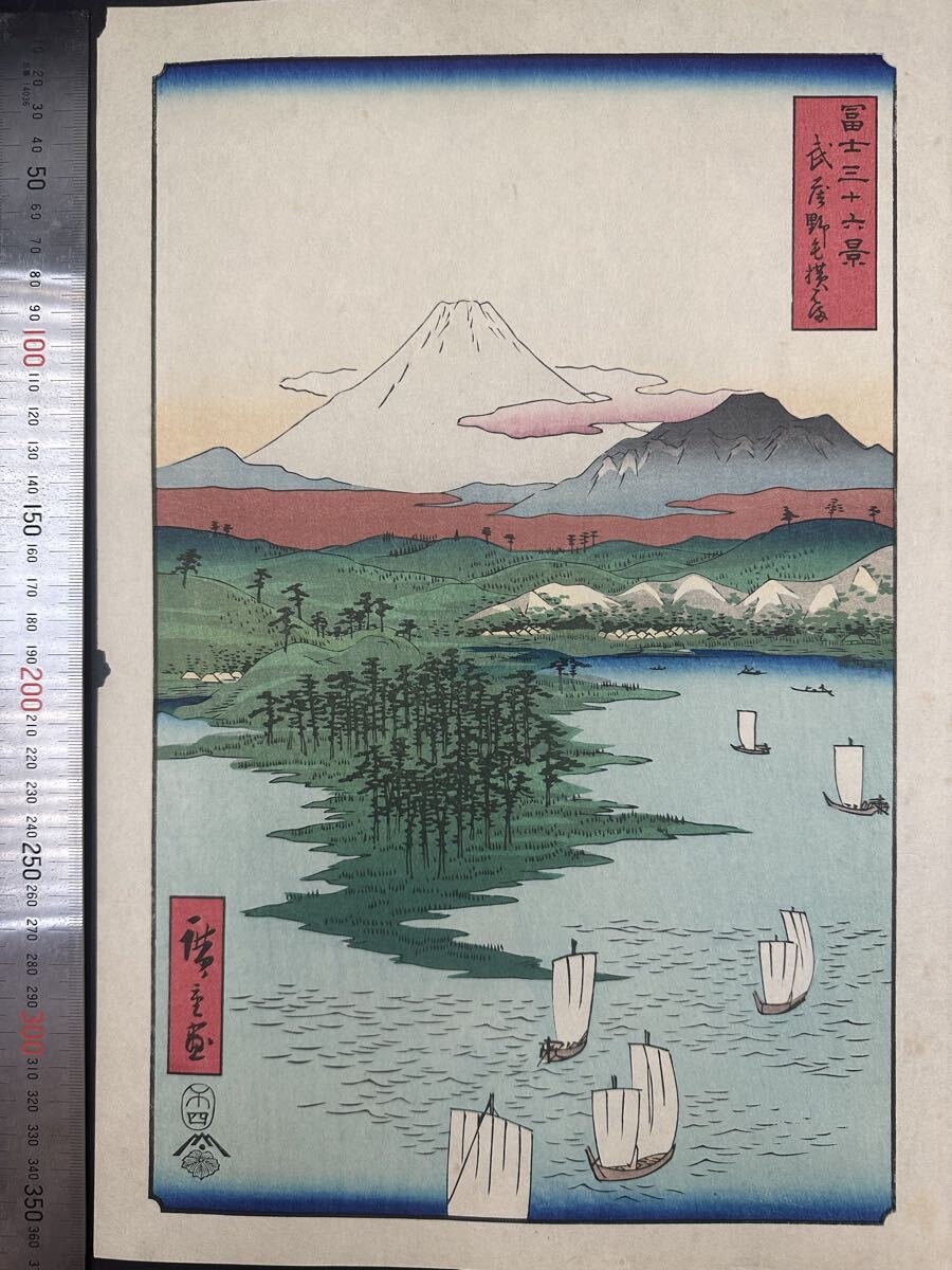 - 【真作】大正期 浮世絵木版画 歌川広重「冨士三十六景 武蔵野毛横はま」名所絵 大判 錦絵 保存良い 大判