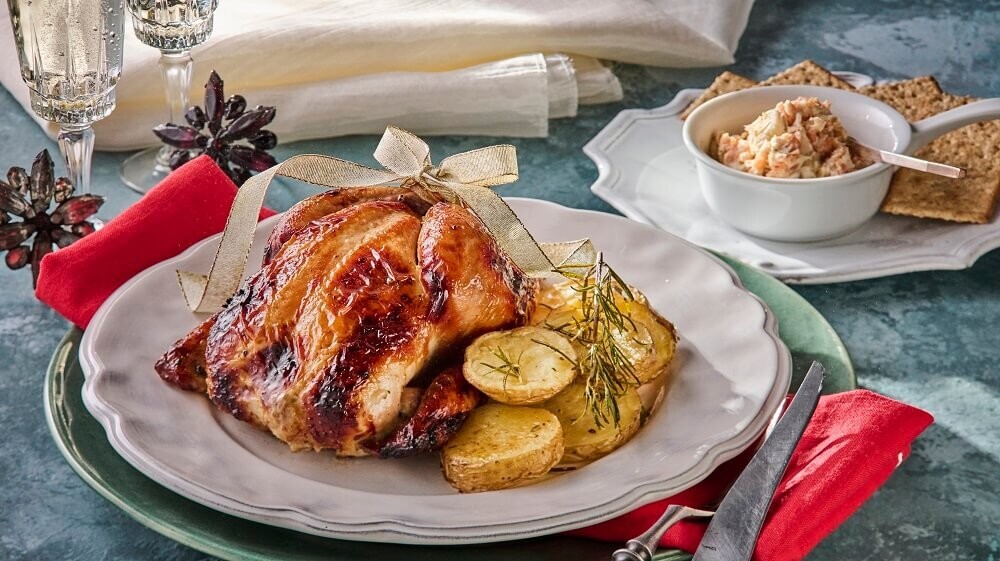 - ABCクッキングレシピ 紙レシピ「丸鶏のローストチキンとサーモンディップ」料理 2023年11月12月タブレット限定メニュー