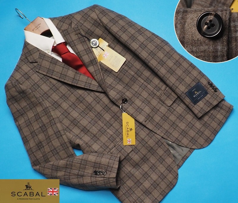 > 新品14.3万円 大手百貨店扱い 秋冬 日本製『Scabal スキャバル 英国製生地』ウールフランネル チェック柄 ジャケットAB7茶(E) 3250480
