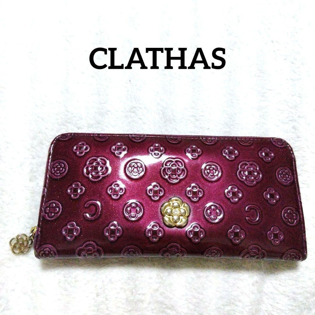 - CLATHAS クレイサス 長財布 花柄 エナメル 光沢 ラウンドジップ パープル ゴールド金具 フラワー ピンク ファスナー 地雷系量産型