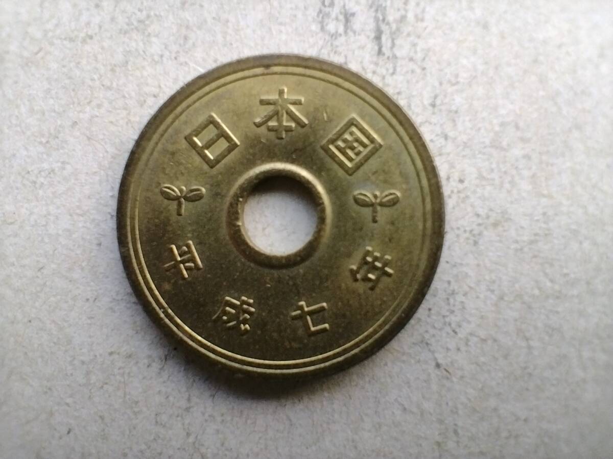 - 平成7年 5円玉 5円硬貨 5円黄銅貨 平成七年 1995年 一九九五年 五円玉 五円硬貨 コイン メダル 貨幣 硬貨 黄銅 真鍮 ブラス 即決