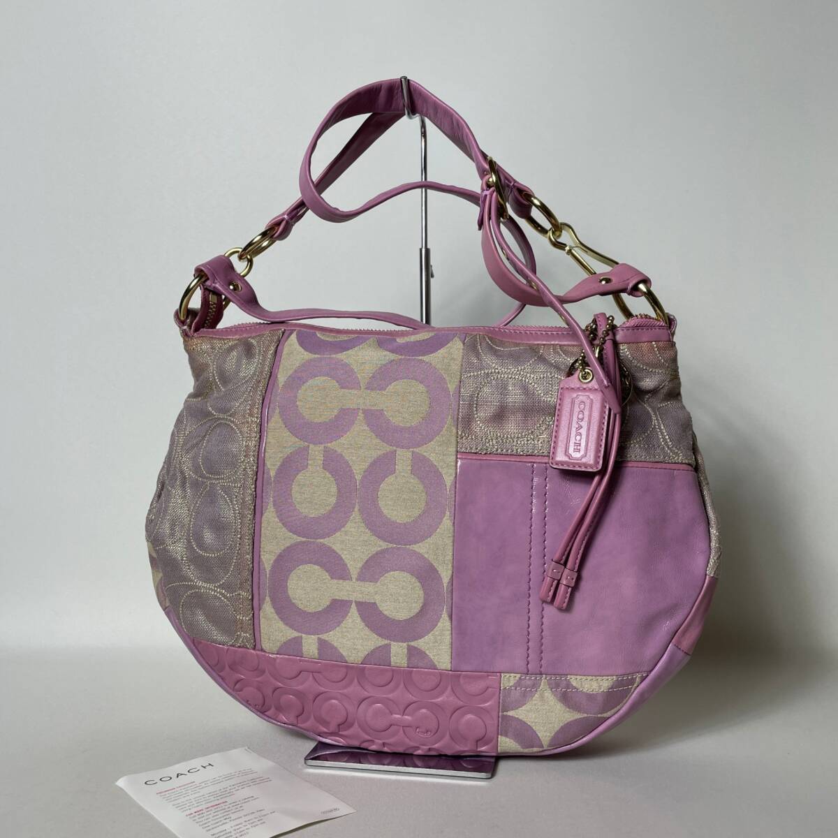 > 2508-376|美品|コーチ オプアート×シグネチャー 2WAYバッグ ピンク