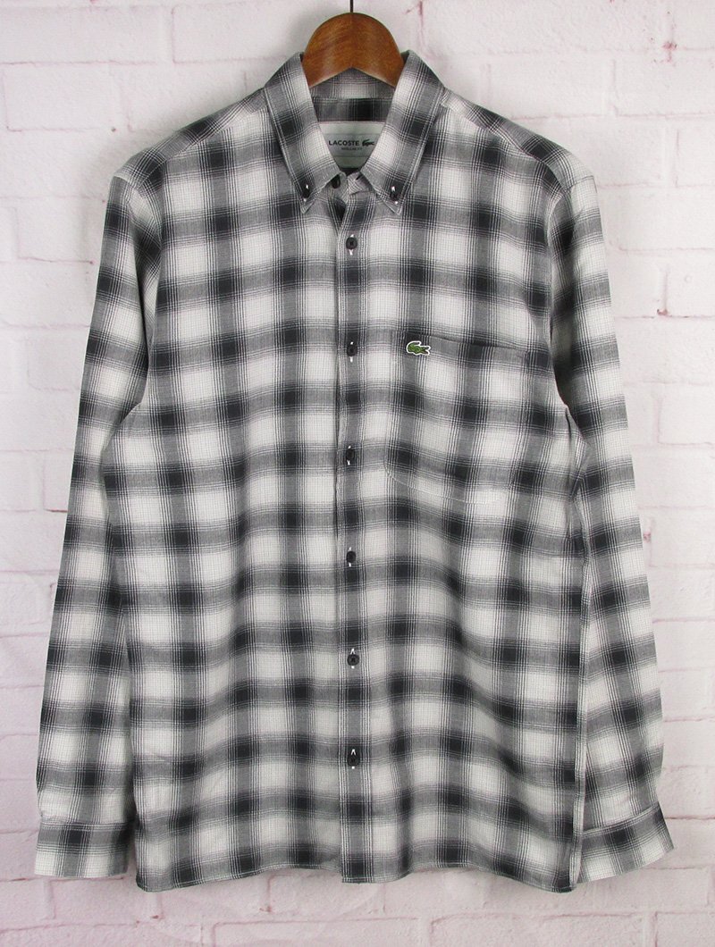 - LAS9080 LACOSTE ラコステ CH6347 ウールブレンド フランネル チェック シャツ ボタンダウン ブラック FR 38/US S 未使用