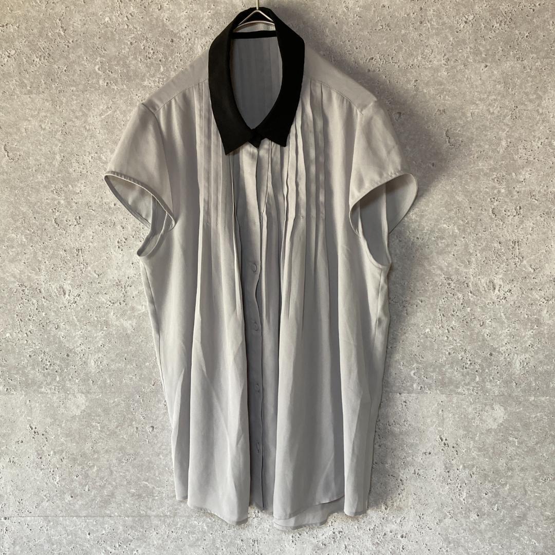 - ブラックバイマウジー(2)フレンチスリーブシャツ*前開き*バイカラー*プリーツ
