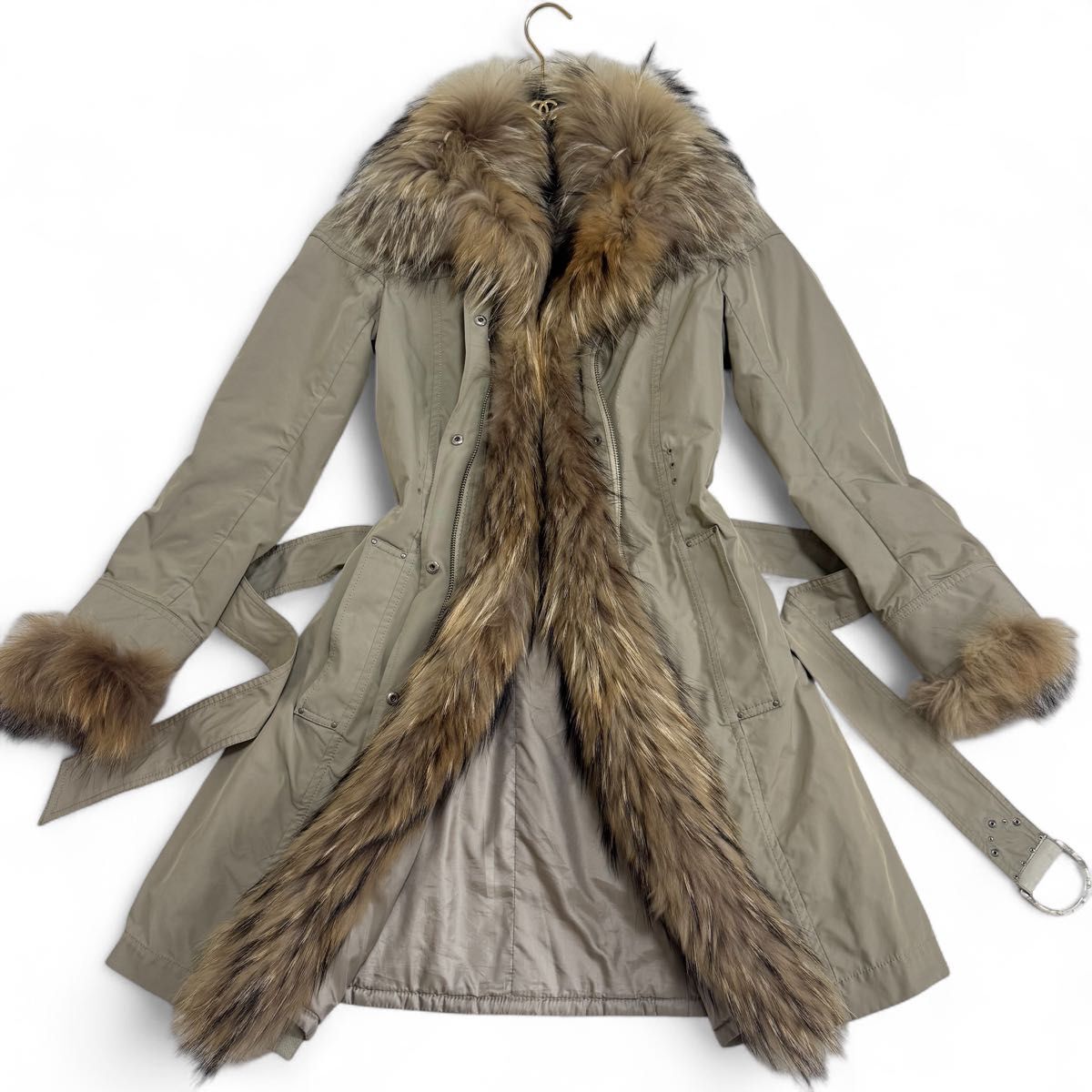 - 【3WAY】MOGA モガ 毛皮ファー ライナー 脱着可能 ロングコート ベルト スプリングコート トレンチコート ベージュ 2