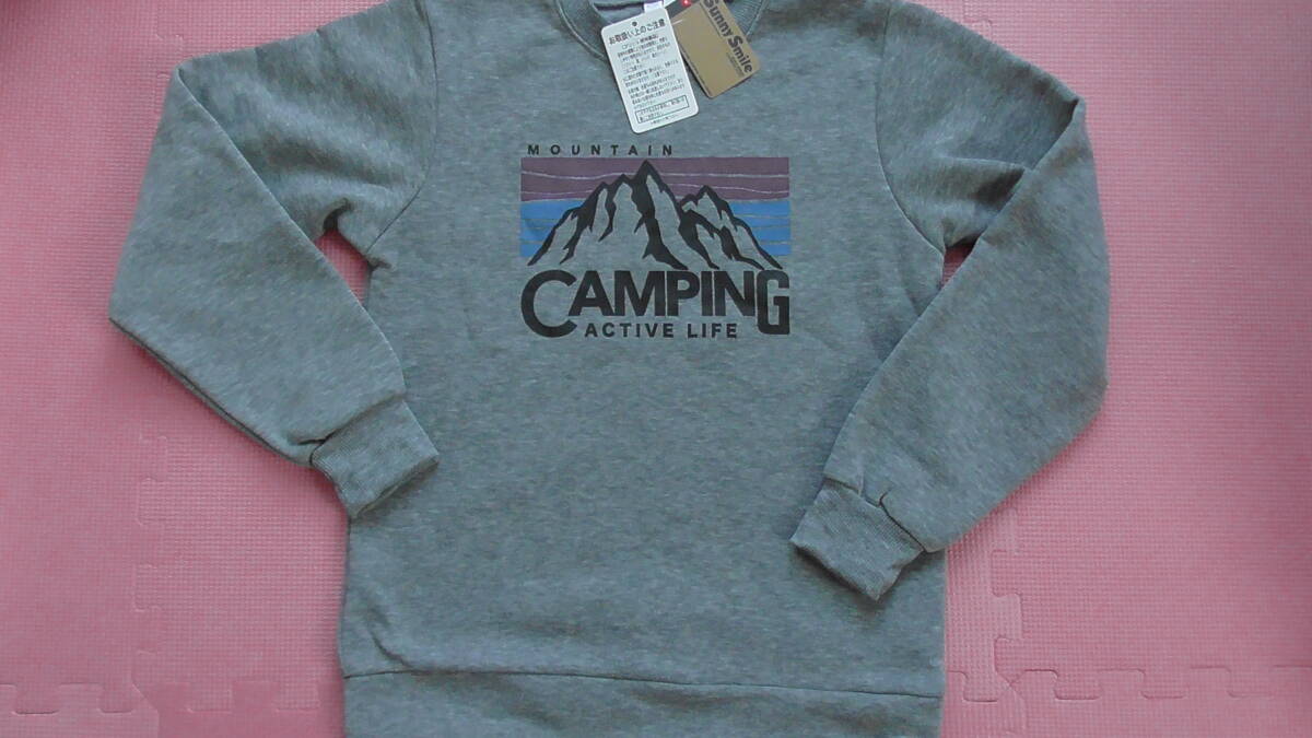 > 新品 150 長袖トレーナー グレー 山脈柄プリント 裏フリース スウェットシャツ 裏起毛 あったか素材 小学生 男の子 冬物 140〜 送料無料