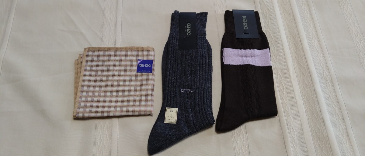 - (未使用品)靴下2足ハンカチセット⑤ケンゾー