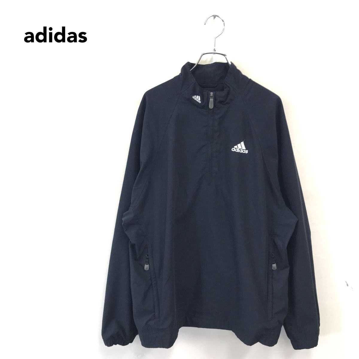 - 2K1699-Q◆adidas アディダス プルオーバージャケット ハーフジップ アウター ロゴ刺繍 無地 メンズ◆size L 紺 ネイビー ポリエステル100