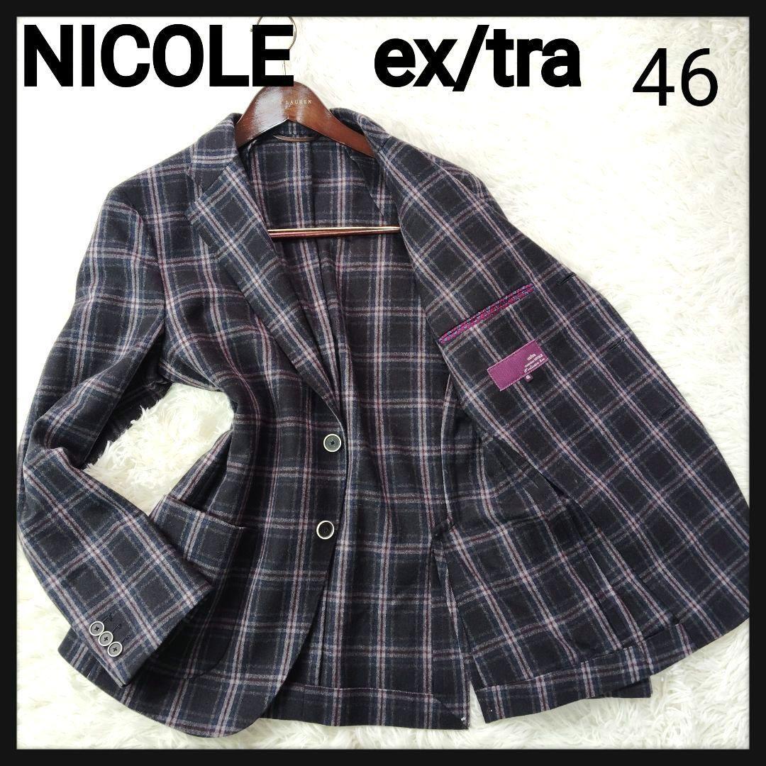 - 【美品】ムッシュニコルエクストラ 高級ライン タータンチェックアンコンテーラードジャケット パープル