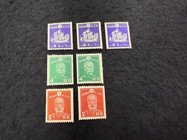 - 25、日本切手 普通切手 第1次昭和 コイル切手 5厘・2銭・4銭 3種7枚 未使用