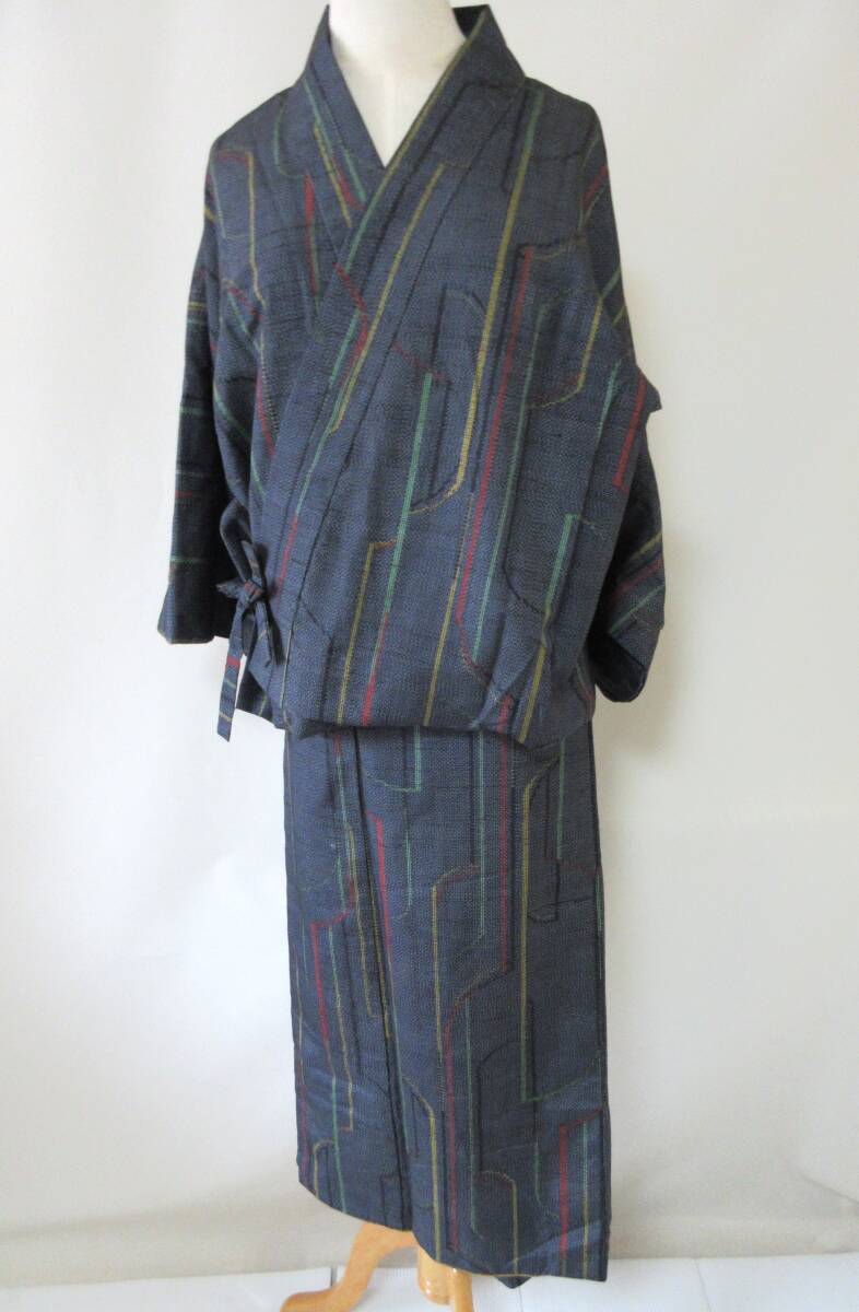 - (54-13)二部式 着物 和装 和服 セパレート 紺 ストライプ