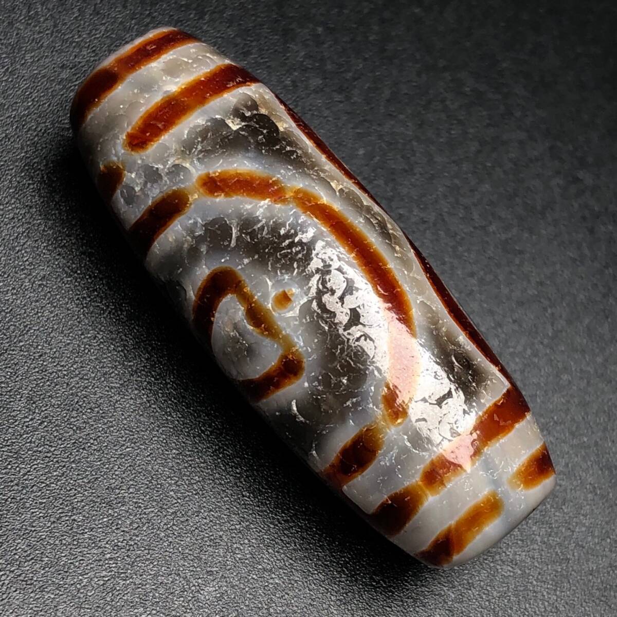 - 蔵友旧蔵出 瑪瑙製 細密彫 蓮心三眼天珠 馬蹄紋 高油包漿 根付裝身具 希少珍品 貴重品 置物 古賞物 中国古玩 中国古美術品