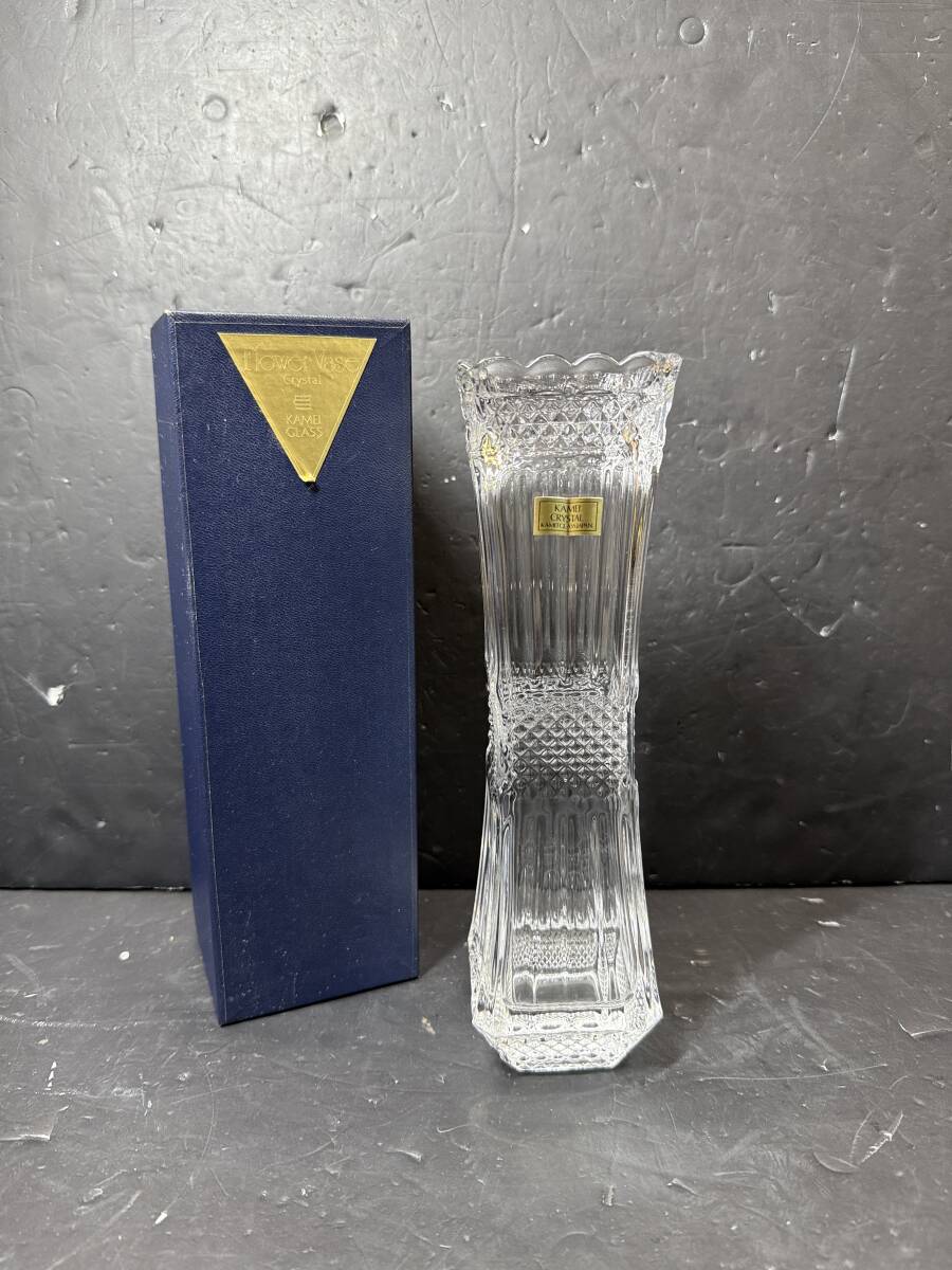 - ★コレクター必見 KAMEI CRYSTAL カメイクリスタル ガラス製 フラワーベース スクエア型 花瓶 花器 インテリア オブジェ 飾り GT267