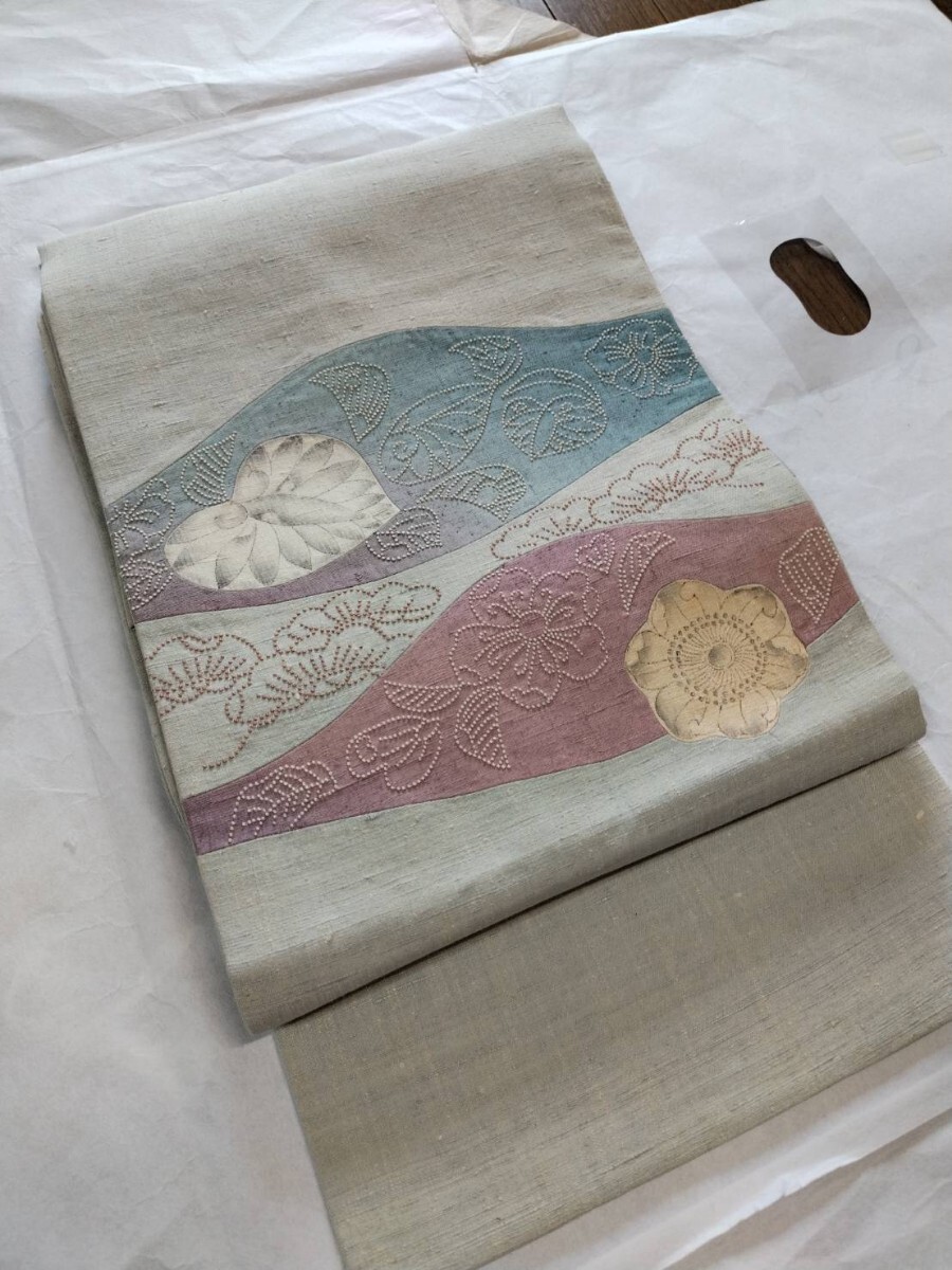 - 工芸名古屋帯 相良刺繍 紬地 未使用品 自己紹介欄必読