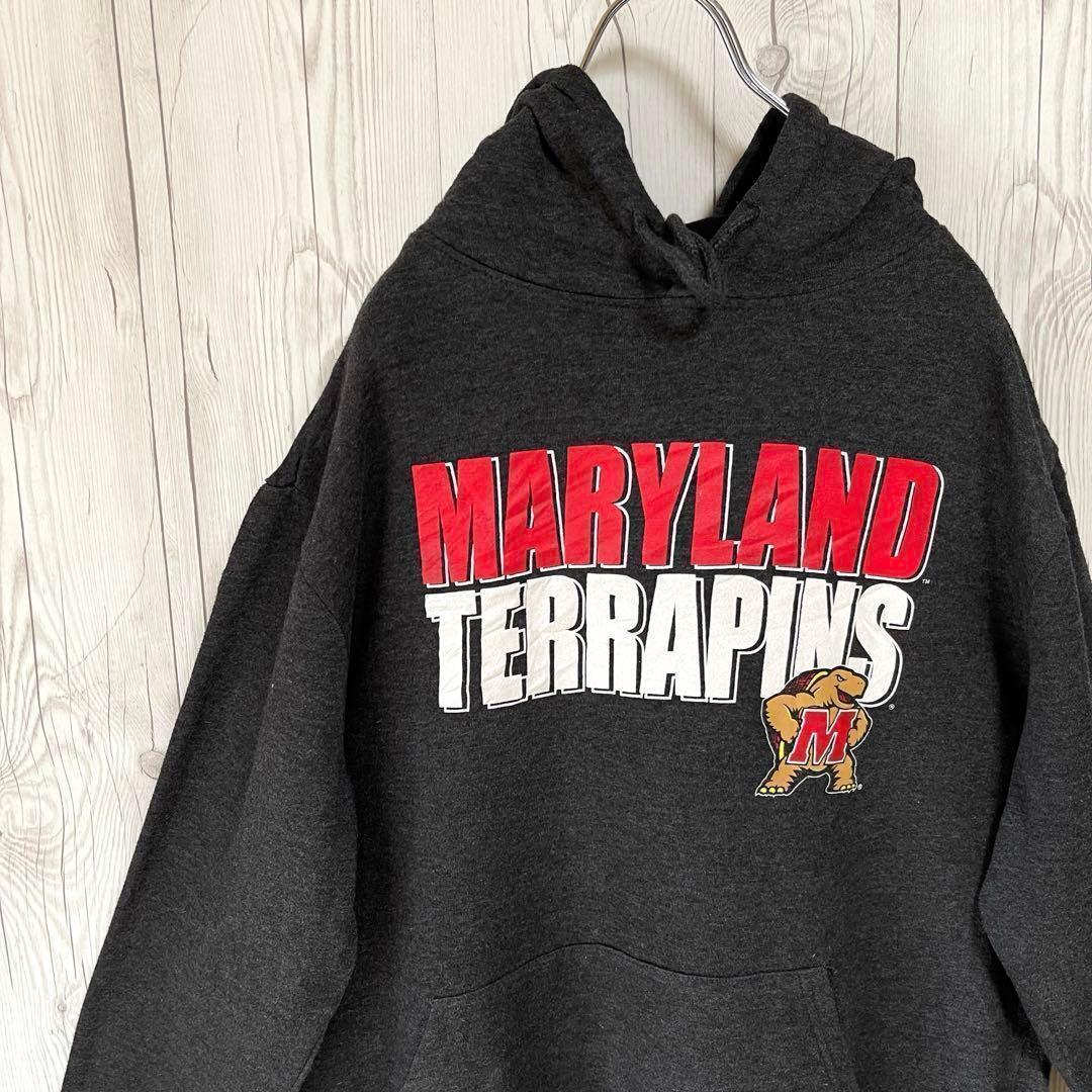- メリーランド大学 アメリカ合衆国 スウェットフーディパーカー フットボール メンズLサイズ ネイビーグレー USA カメ亀