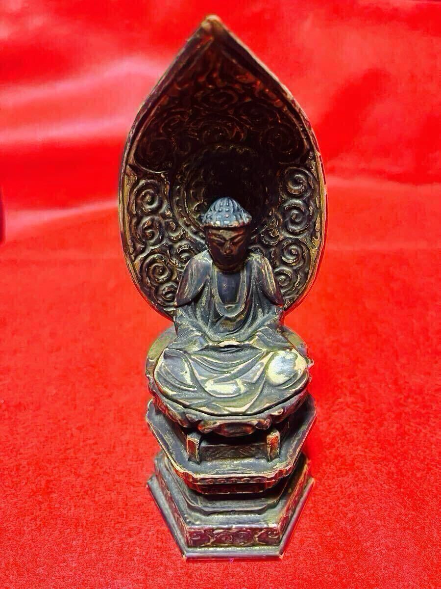 - ★木彫仏像 釈迦如来座像 木製 阿弥陀如来像 仏教美術 仏像 木彫 江戸期 銅製装飾金具 座像 細密木彫 置物 寺院 仏閣 縁起物 菩薩