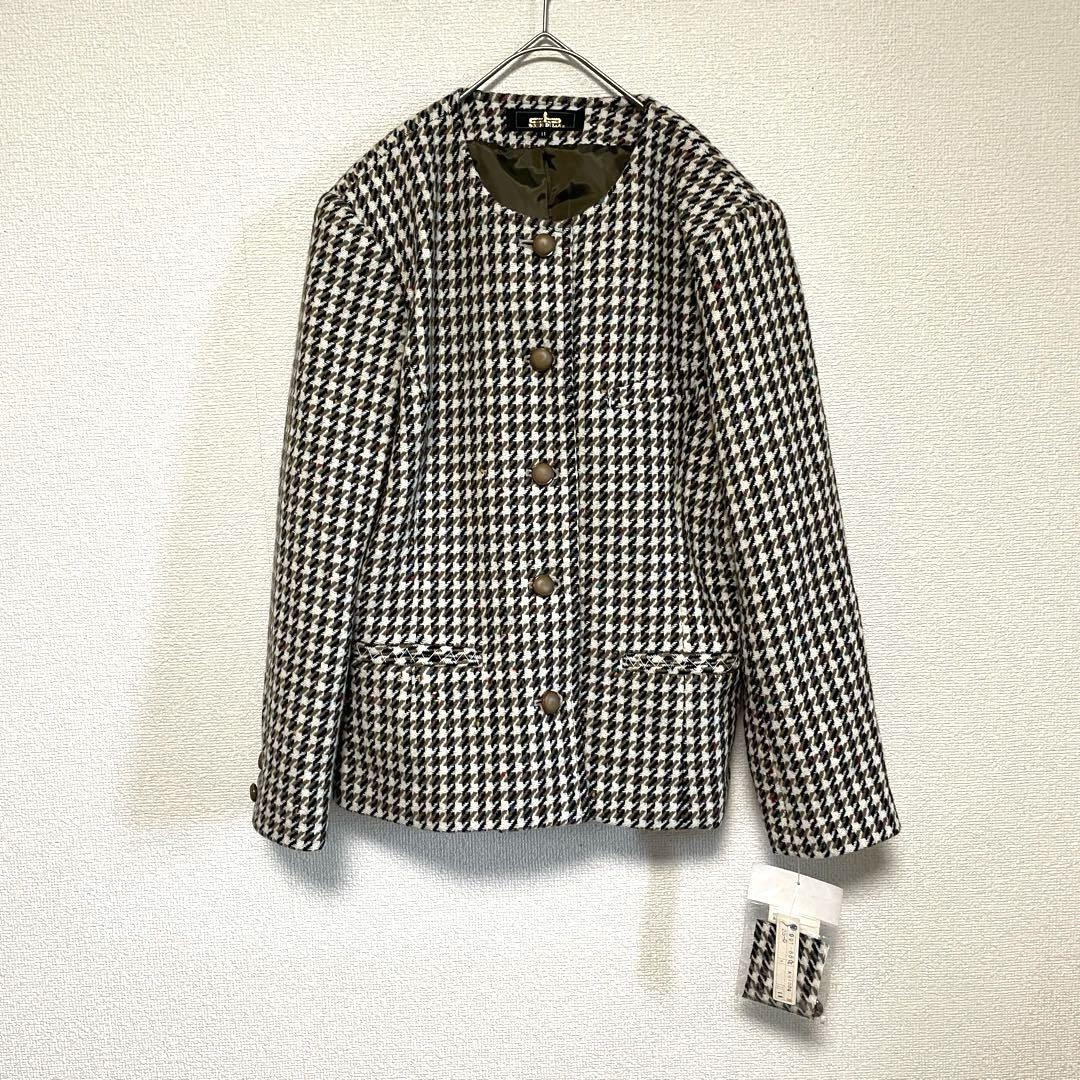 - qq138 ブリンドル/美品/ノーカラージャケット/毛100%/レトロ/カラフル