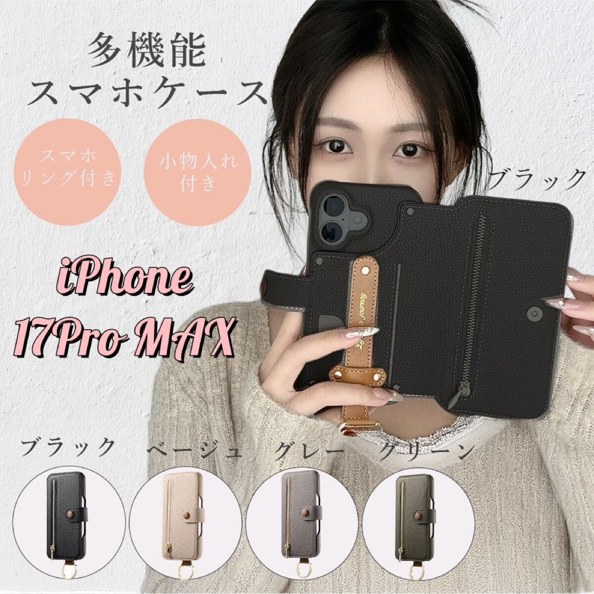 - 新品!大人気!!iPhone17ProMax ケース ブラック スマホカバー ベルト付き カード収納