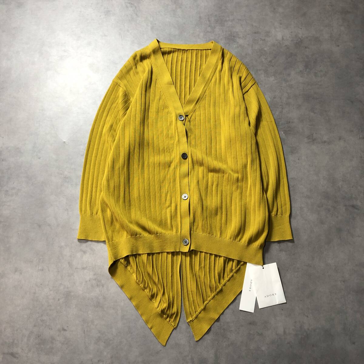 - WQ727●ADORE:タグ付き バックスリットVネックコットンカーディガン ●38● マスタード 定価¥32000-オーバーサイズ アドーア