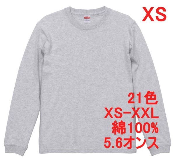 - 長袖 Tシャツ XS アッシュ 袖リブ 綿100 5.6オンス 無地 無地T 長袖Tシャツ ロンT 丸首 クルーネック コットン A513 SS 灰 灰色 501101