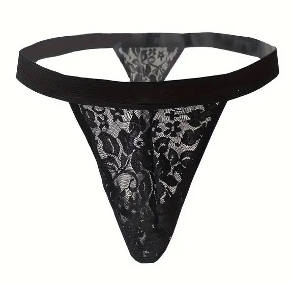 - メンズ レース フルシーム サイドバインダー 花柄レース メッシュ Tバック ビキニ ブラック 日本Mサイズ