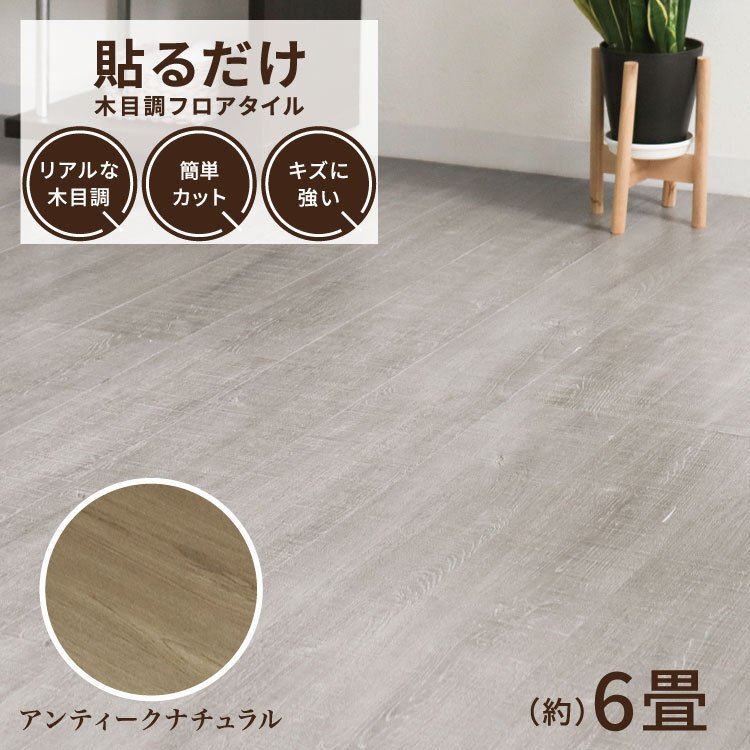 > 【アンティークナチュラル】木目調 フロアタイル 約6畳 72枚セット 貼るだけ シール 接着剤不要 リノベーション 床材 DIY リフォーム
