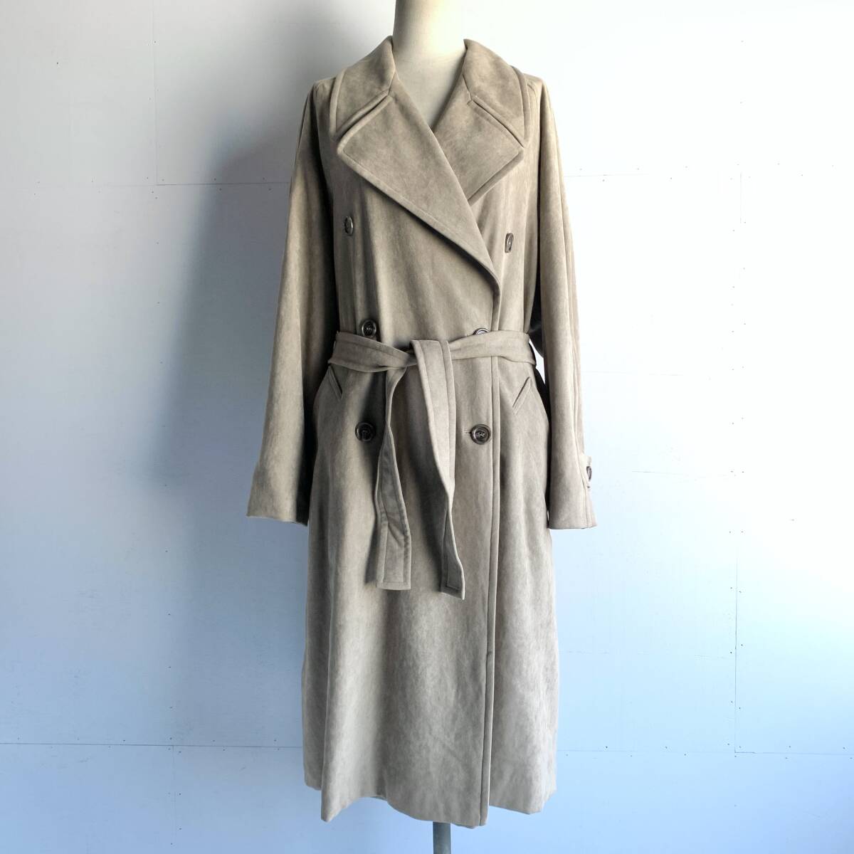 - ☆上質 MaxMara マックスマーラ フェイクスエード ダブルベルテッドロングコート トレンチ グレージュ系 サイズ40【送料一律/同梱可能】I