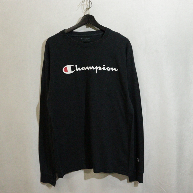 > L39 2000年代製 champion チャンピオン 長袖Tシャツ■00s 表記Lサイズ 黒 ブラック アメカジ ストリート 古着 古着卸 激安 ヴィンテージ