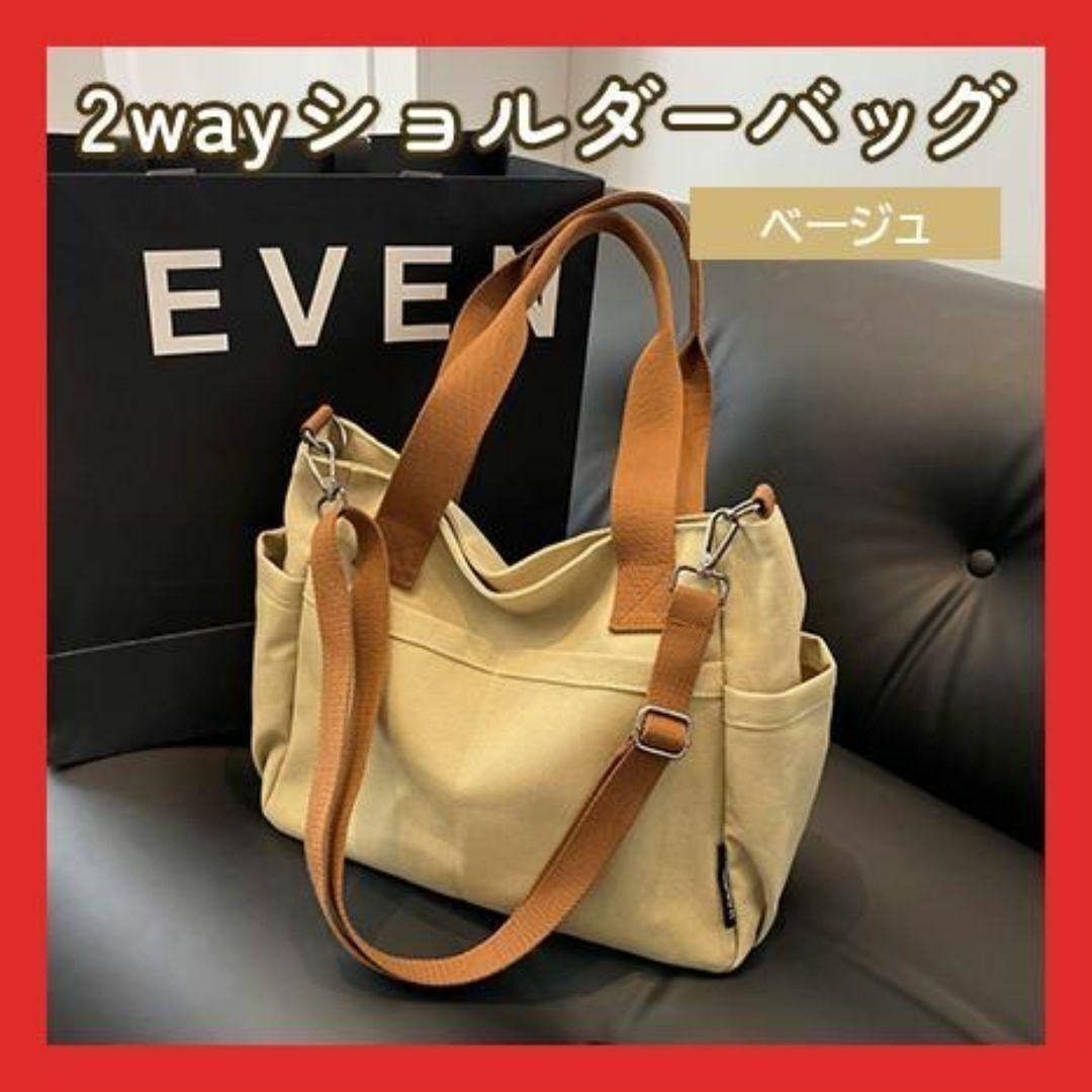 - ベージュ ショルダーバッグ キャンバス 大容量 A4 帆布 トートバッグ バッグ キャンバストート バイカラー ショルダー 2way バッグ 鞄