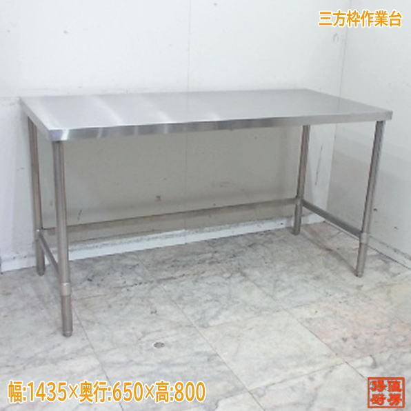 - ステンレス 三方枠作業台 1435×650×800 業務用 中古厨房/25J1213Z