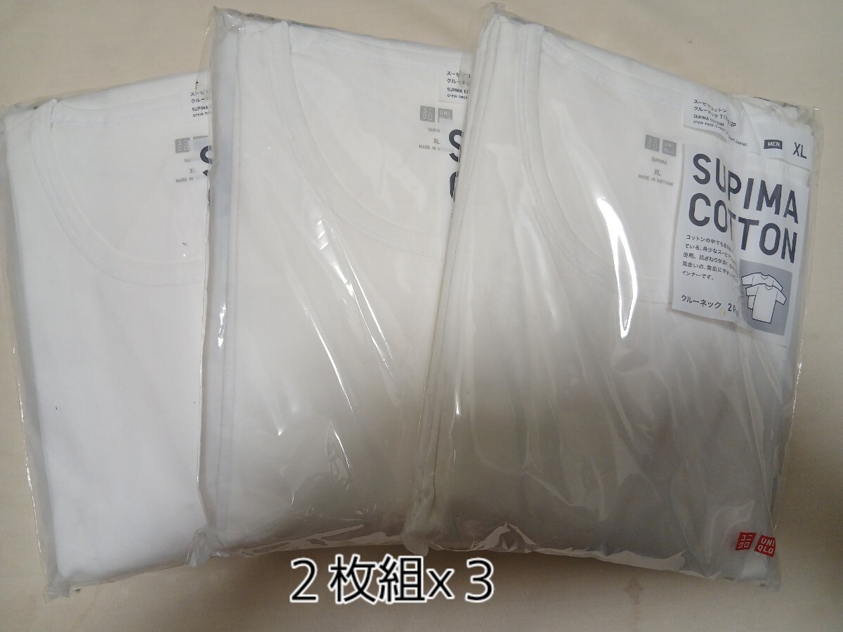 - ☆新品ユニクロ半袖シャツXL/2枚組x3/スーピマコットン940円x3 クールネック
