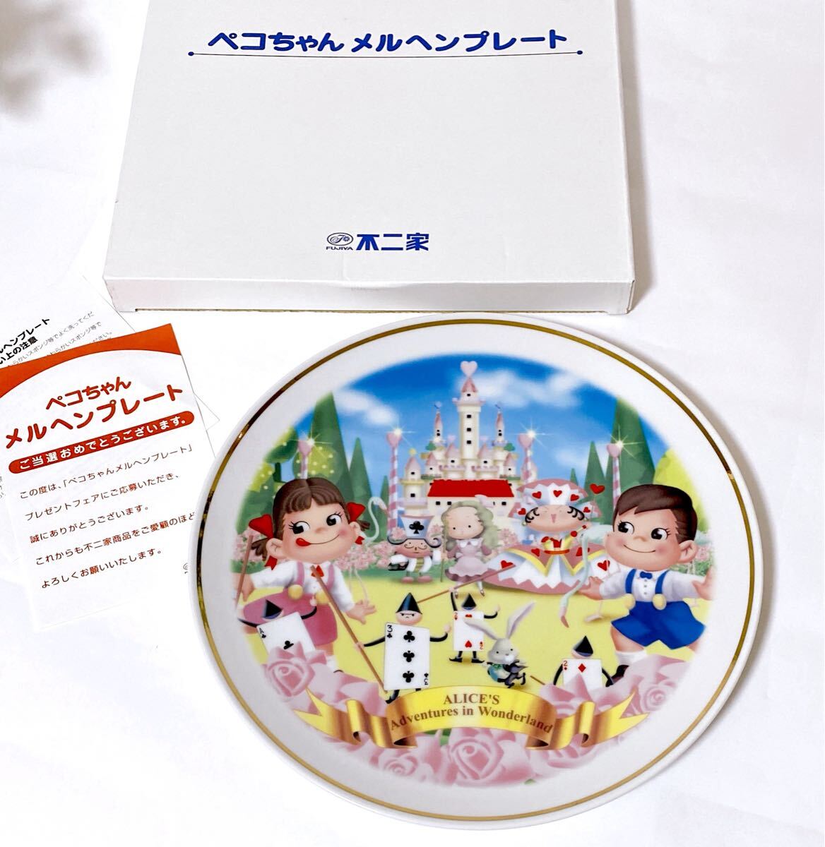 - 不二家「ペコちゃん メルヘンプレート 不思議の国のアリス 」限定 当選品 非売品 ノベルティ 入手困難品 未使用 ヴィンテージ 皿 絵皿 レア