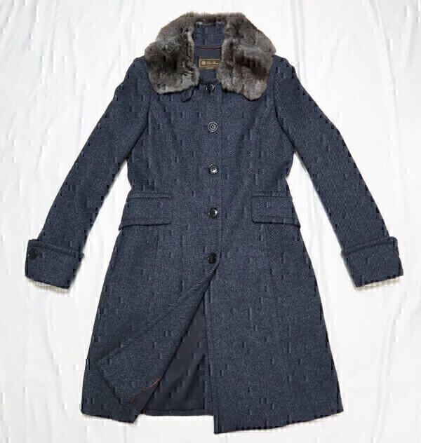 > Loro Piana ファー付 ツイード コート L20625