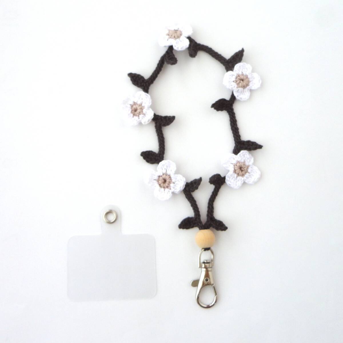 - 小さなお花が満開のストラップ*スマホハンドストラップ*BK*レース編み*ハンドメイド*b897