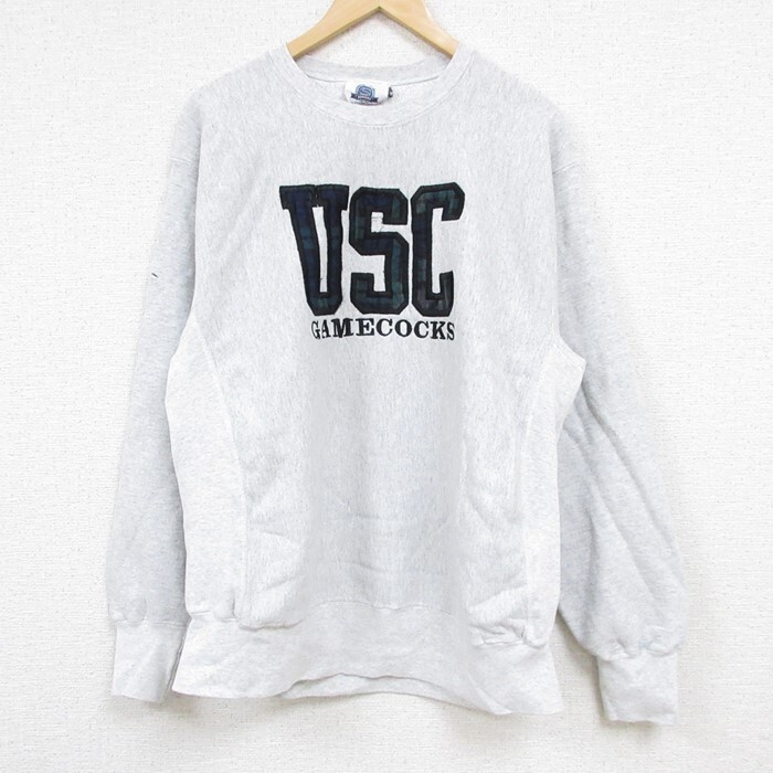 > L/古着 長袖 スウェット メンズ 00s USC クルーネック 薄グレー 霜降り 24aug23 中古 スエット トレーナー トップス