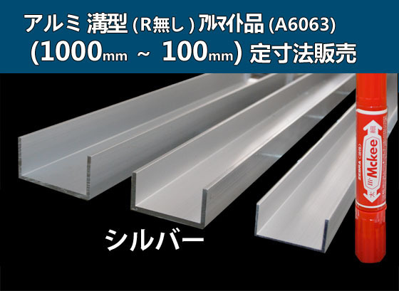 > ※即決落札※ アルミ溝型(R無し)シルバーアルマイト品 各形状の(1000~100mm)各定寸長さでの販売A51