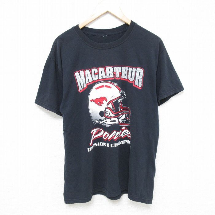 > L/古着 半袖 Tシャツ メンズ アメフト クルーネック 黒 ブラック 25may27 中古