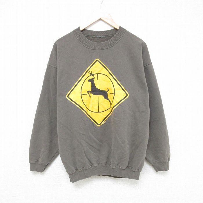 - L/古着 長袖 スウェット メンズ 00s シカ クルーネック 緑 グリーン 25may09 中古 スエット トレーナー トップス